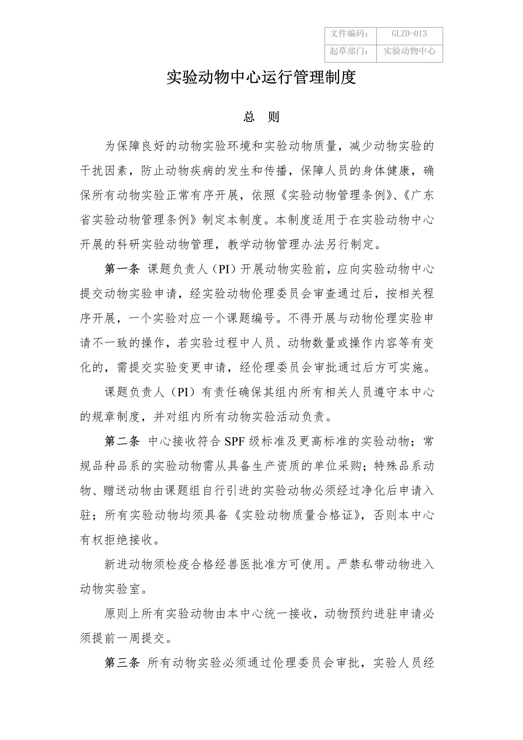 实验动物中心运行管理制度