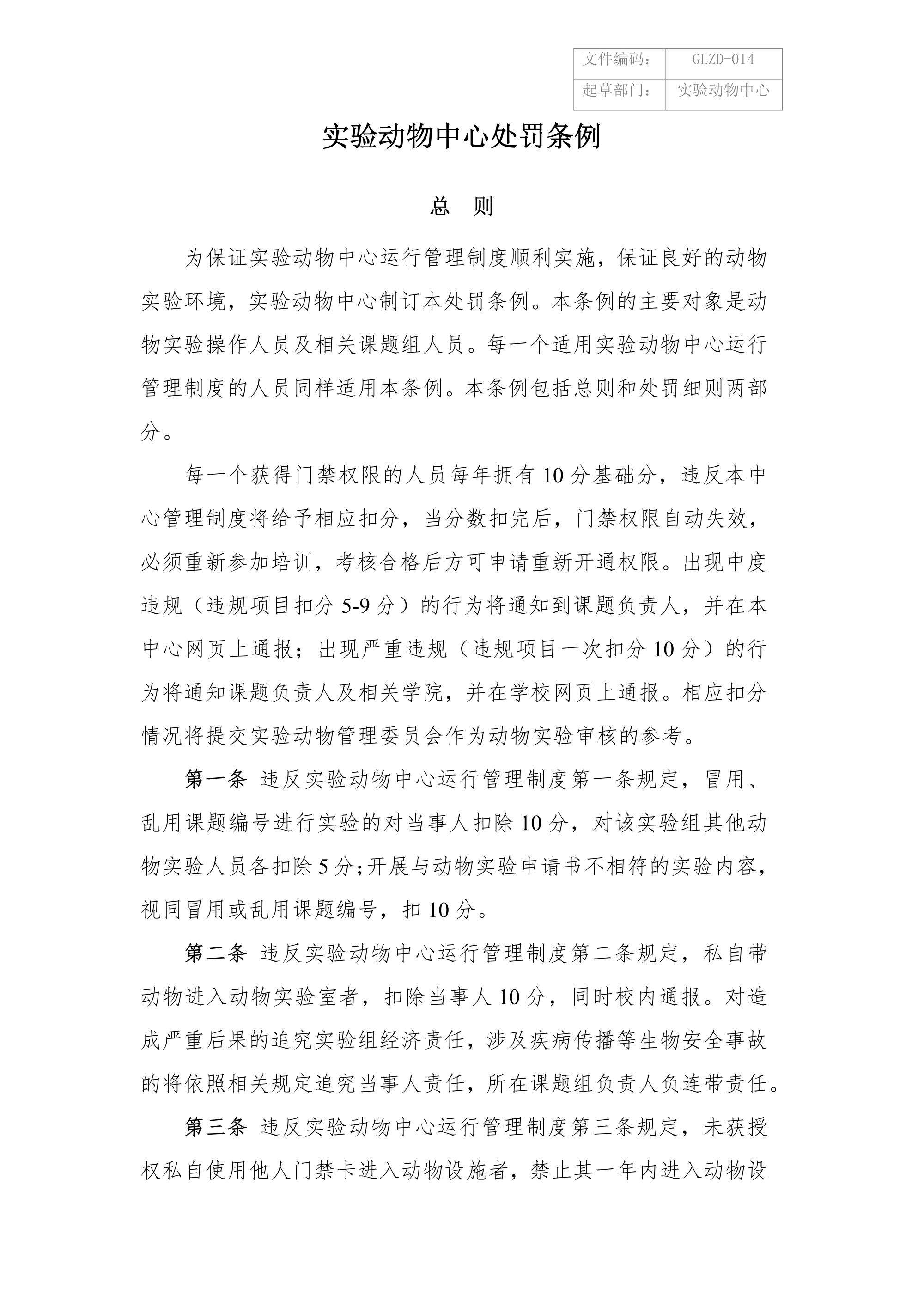 实验动物中心处罚条例