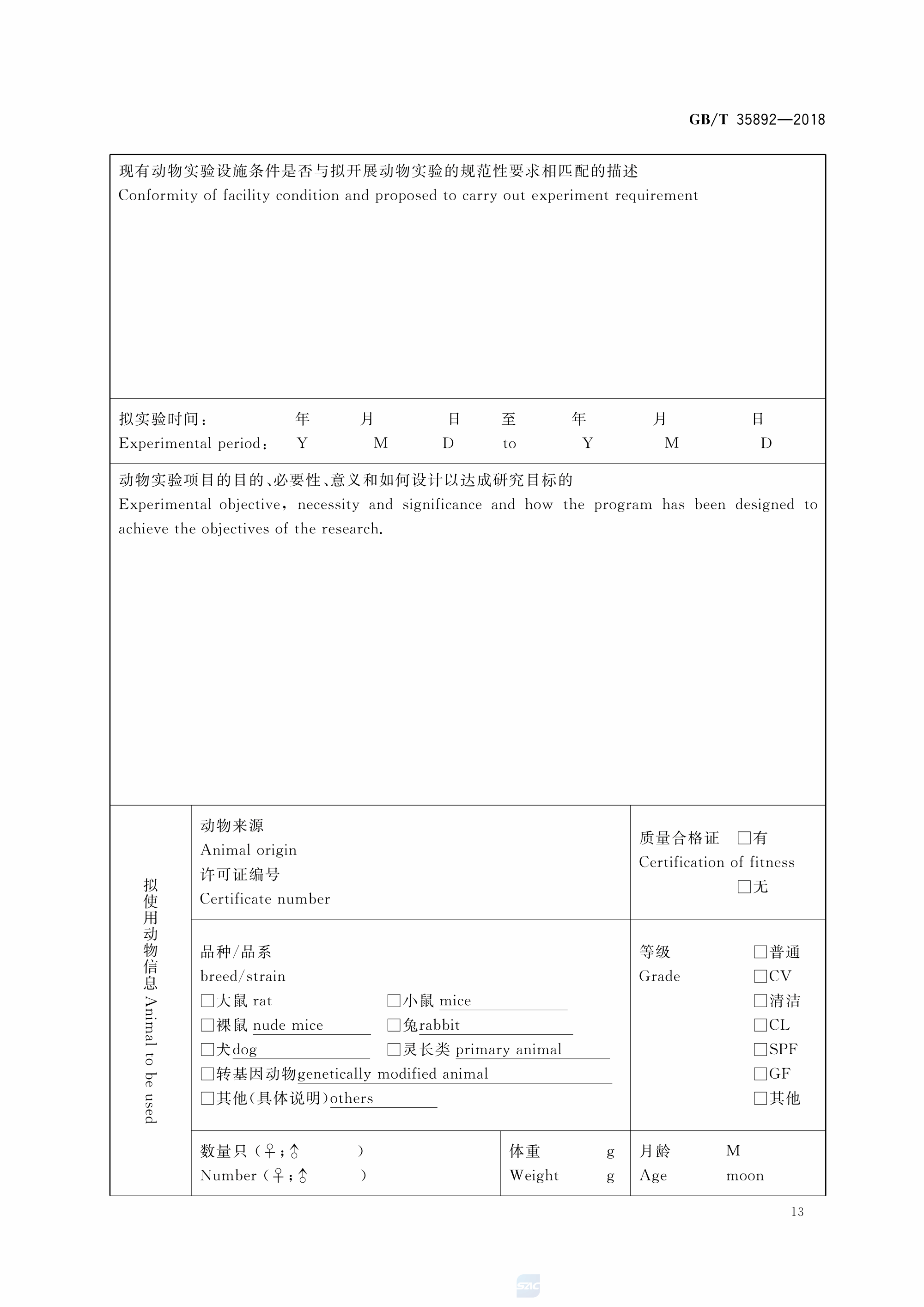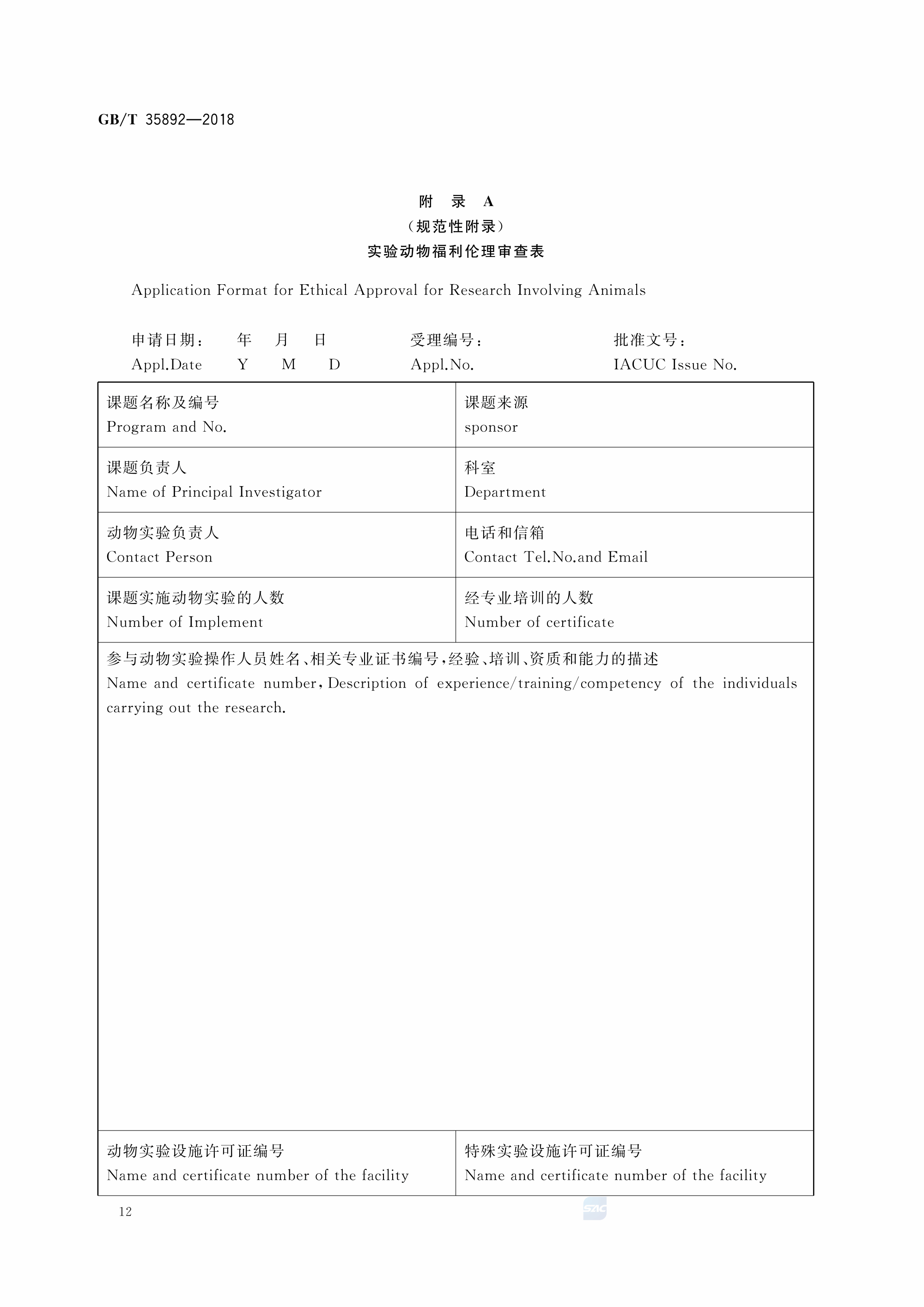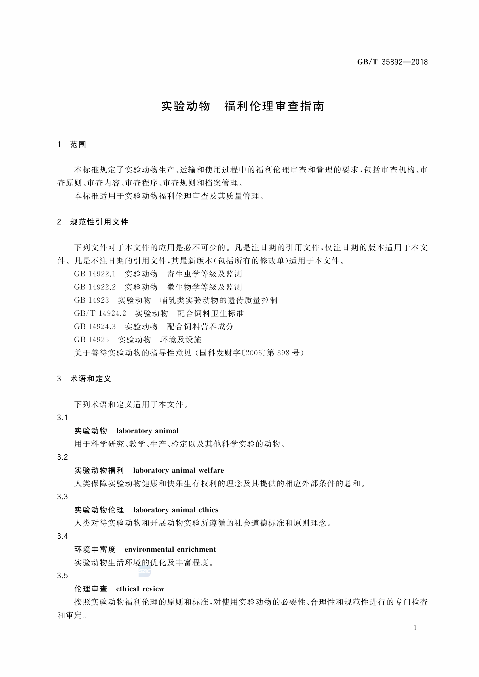 GBT+35892-2018 实验动物 福利伦理审查指南