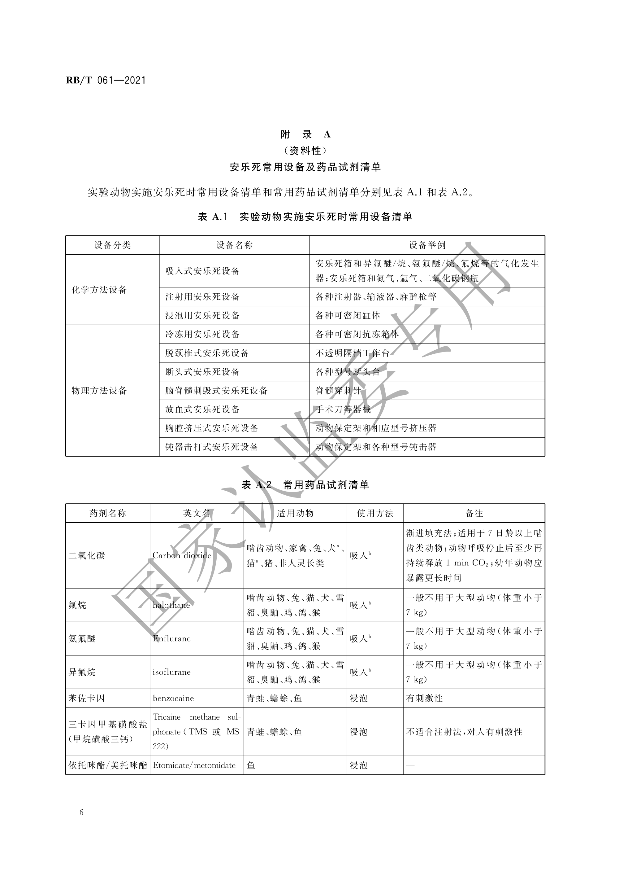 RB∕T 061-2021 实验动物安乐死技术规范