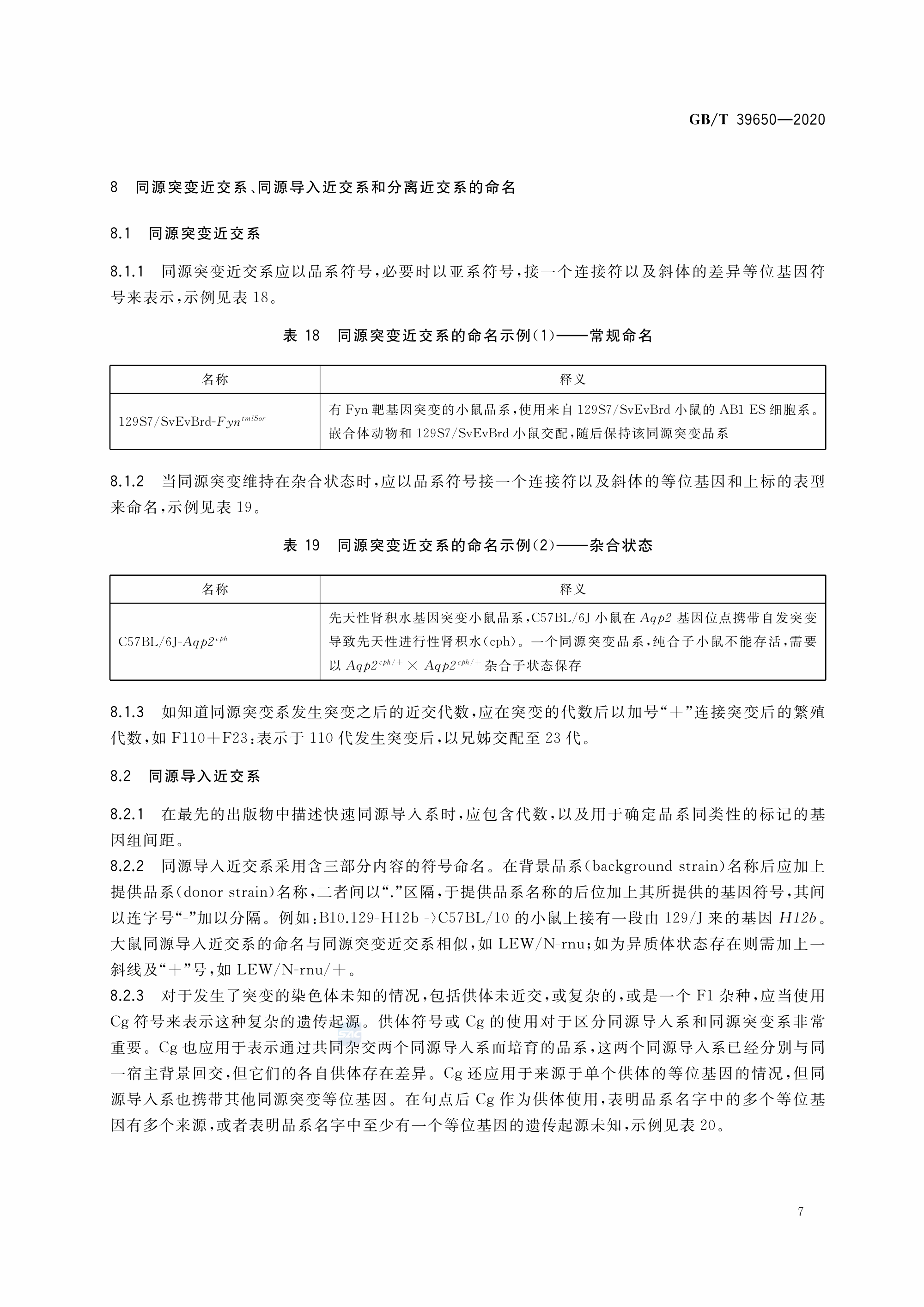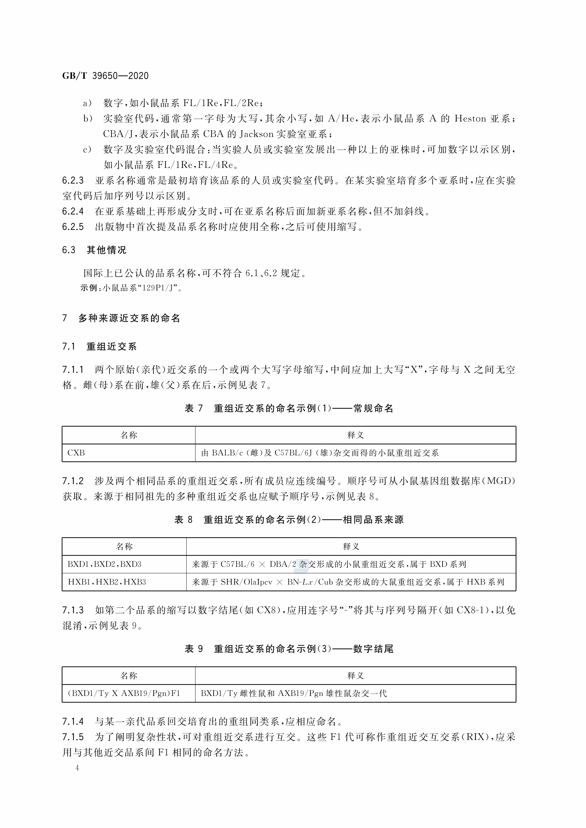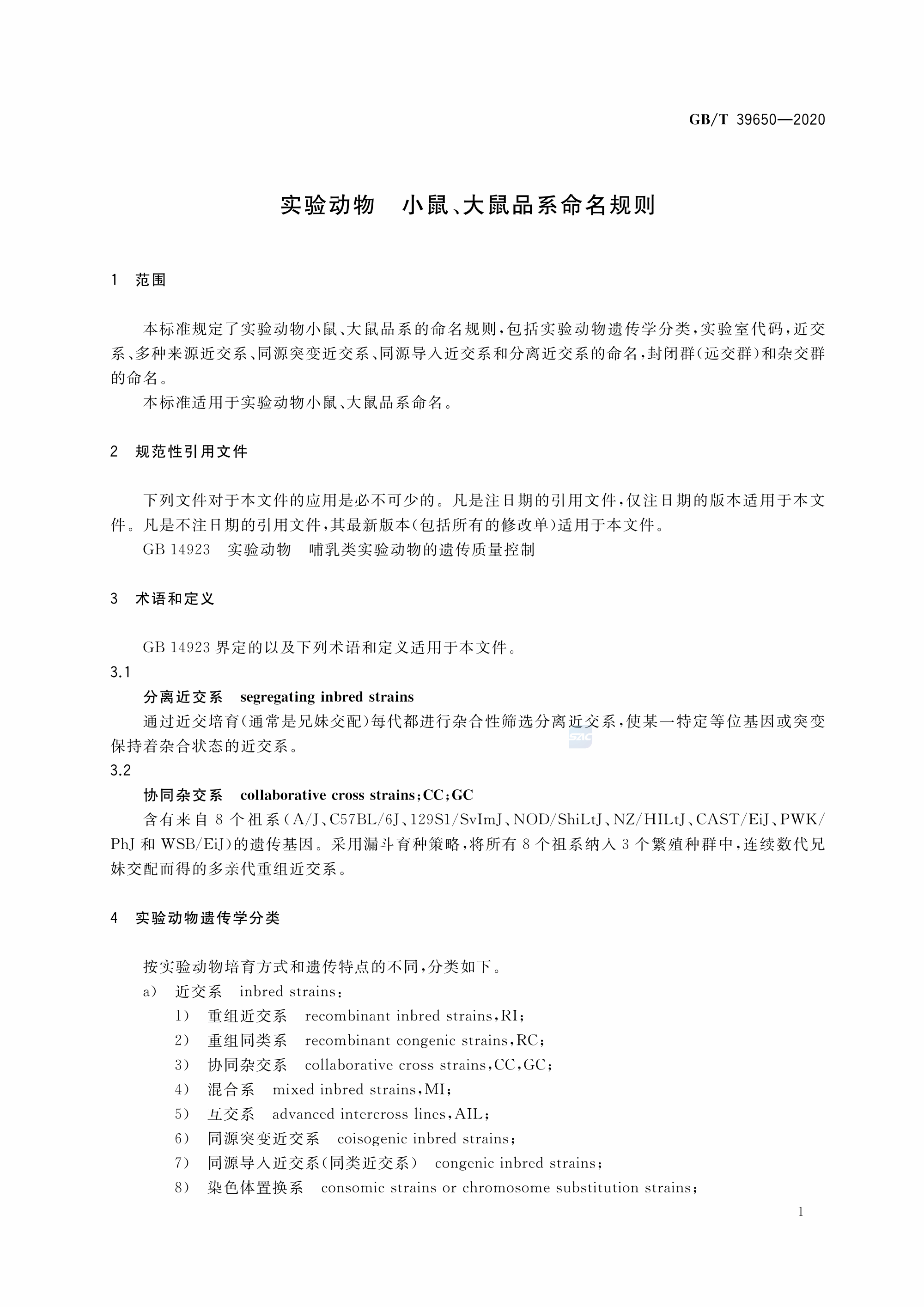 GBT+39650-2020 实验动物 小鼠、大鼠品系命名规则