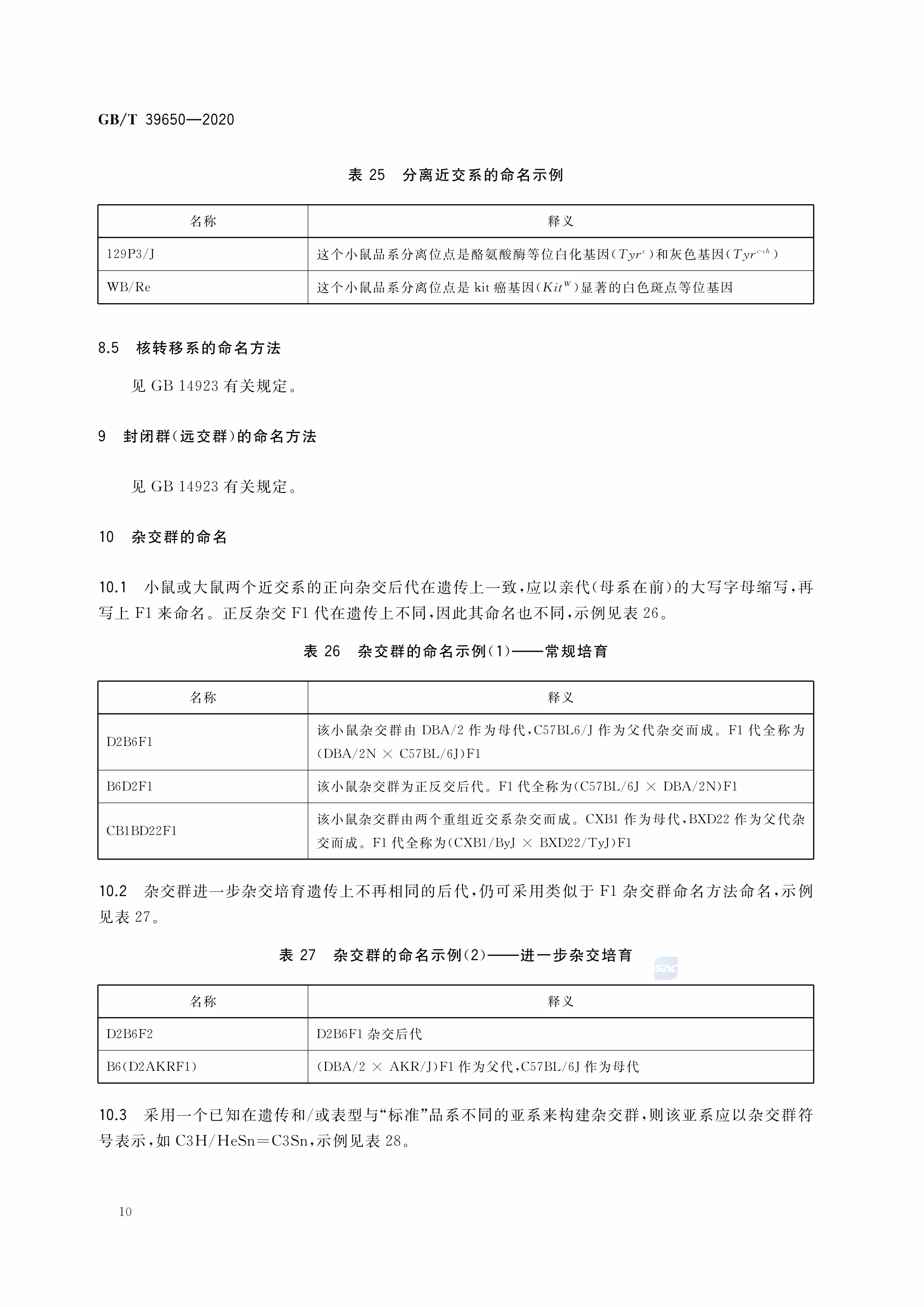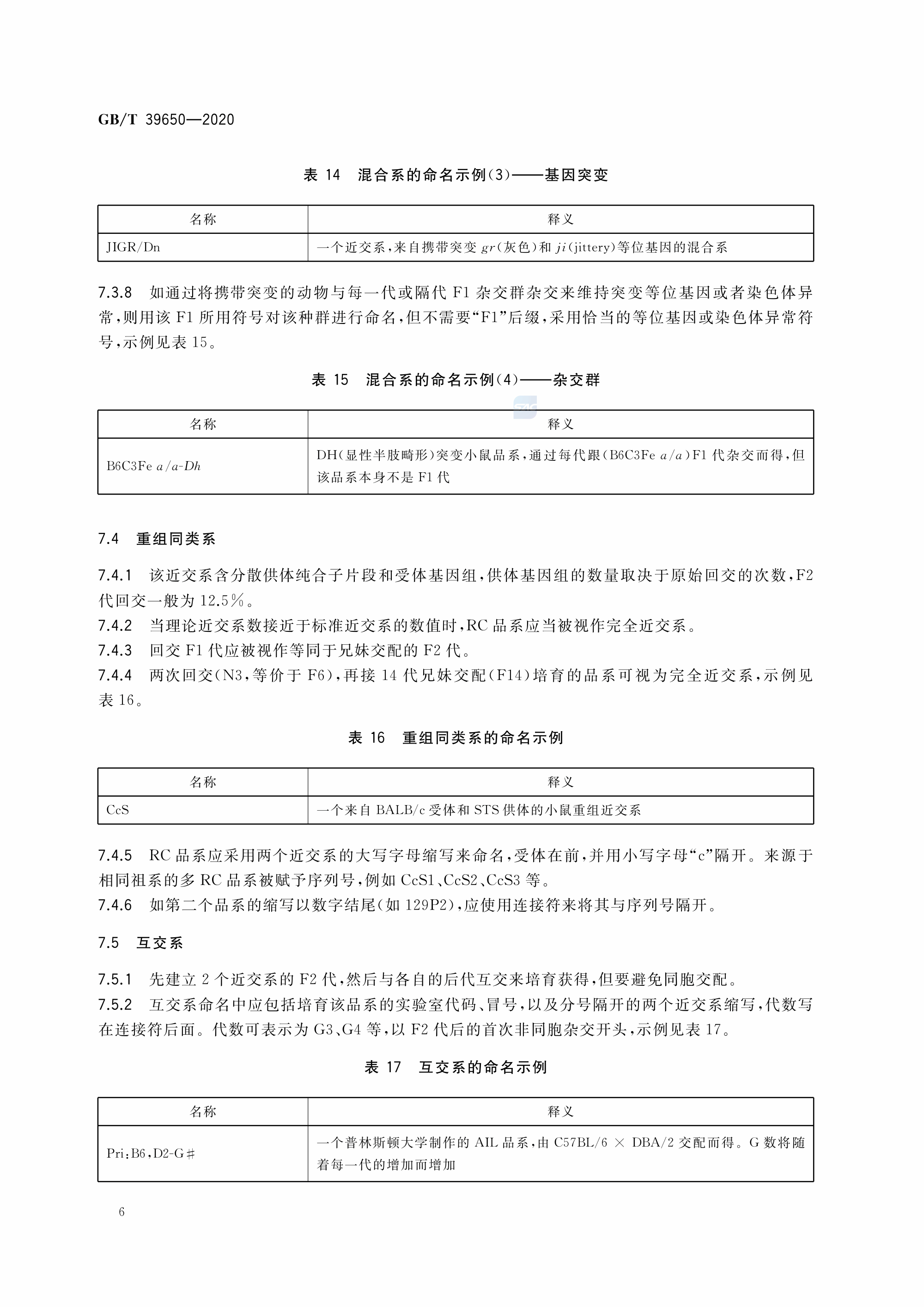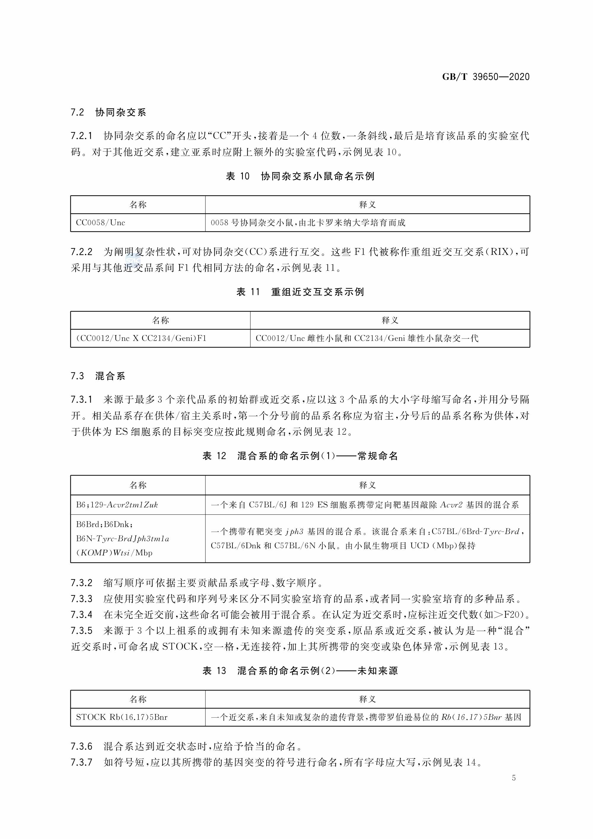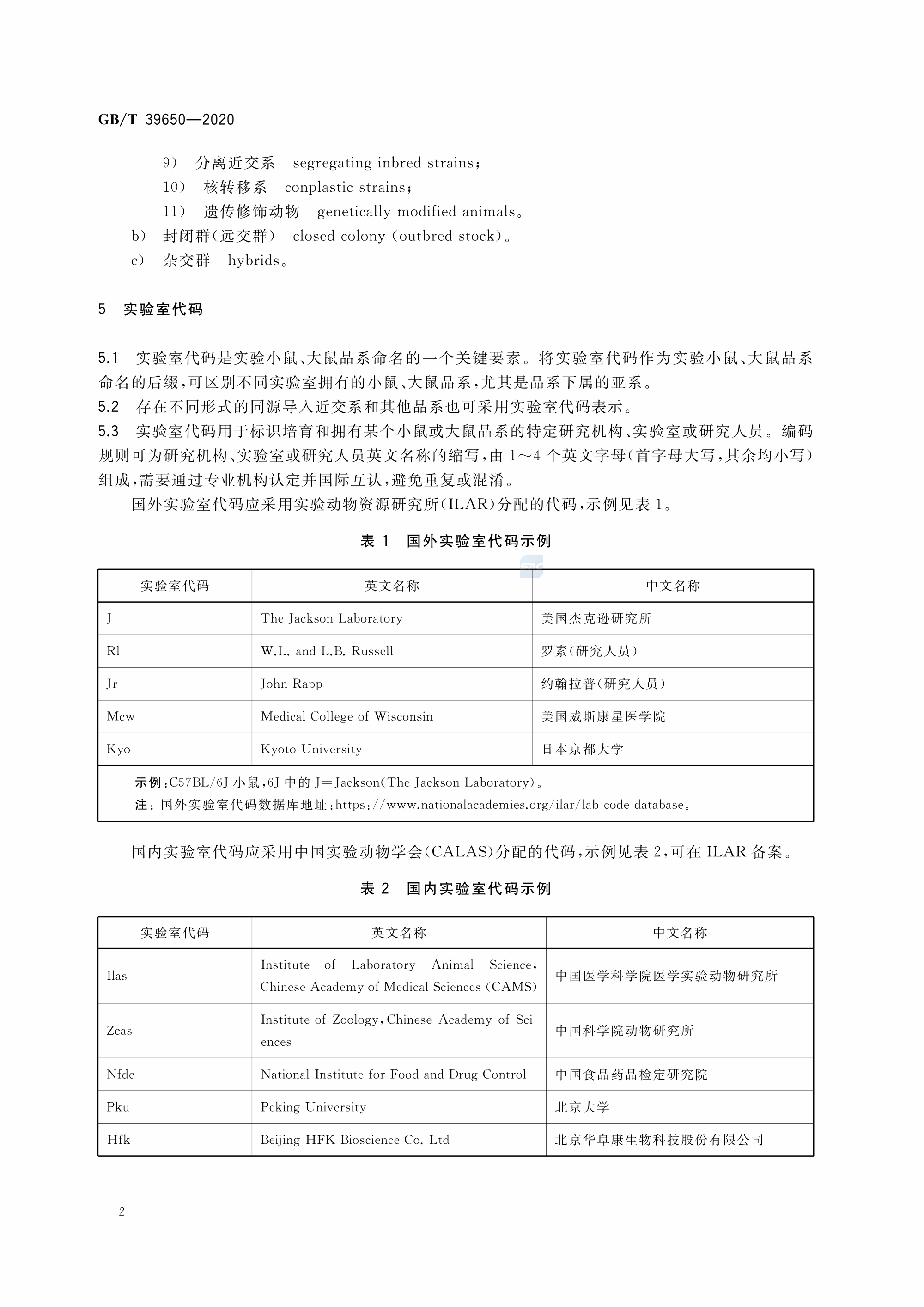 GBT+39650-2020 实验动物 小鼠、大鼠品系命名规则