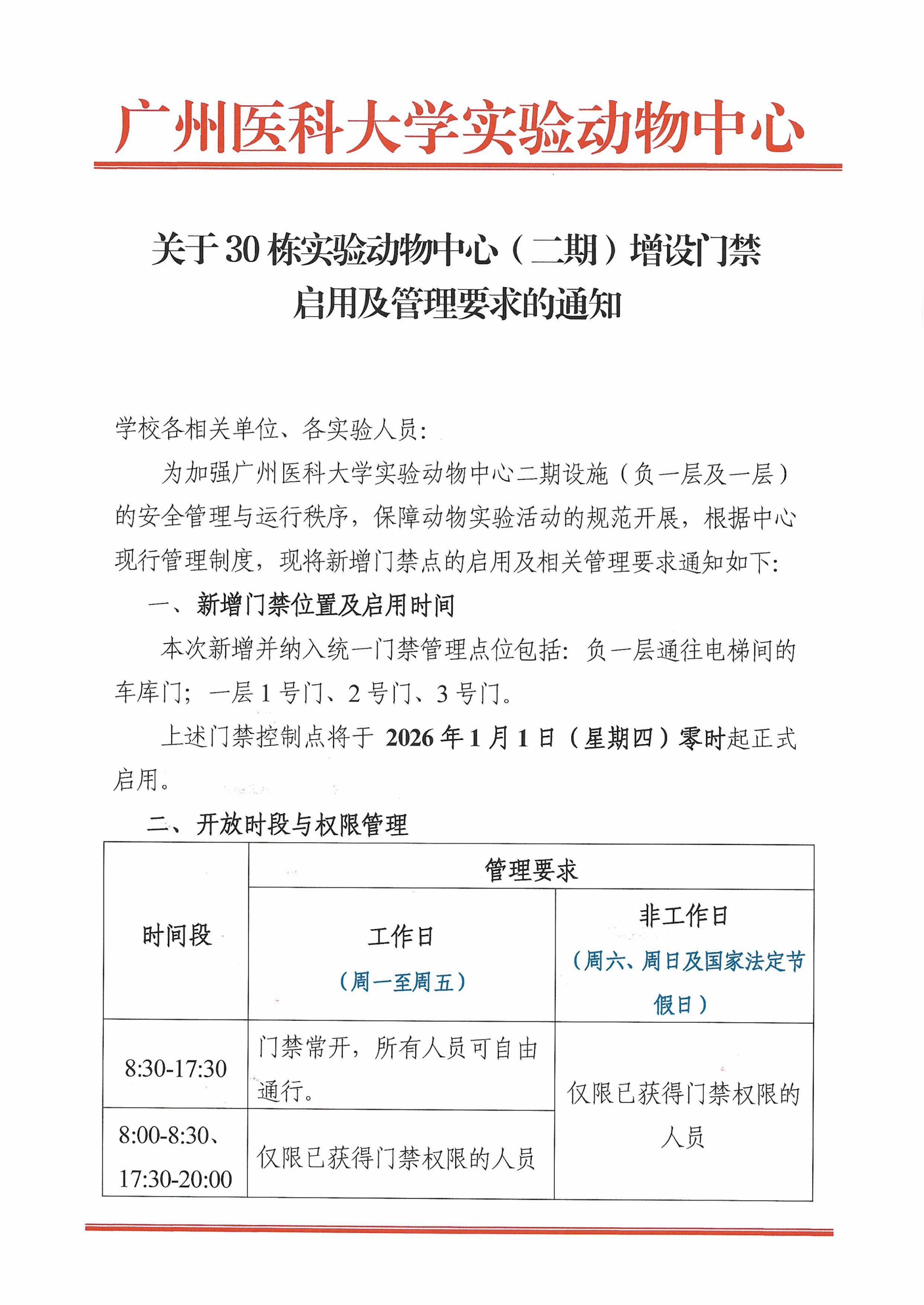 (含附件))关于30栋实验动物中心(二期)增设门禁启用及管理要求的通知.pdf