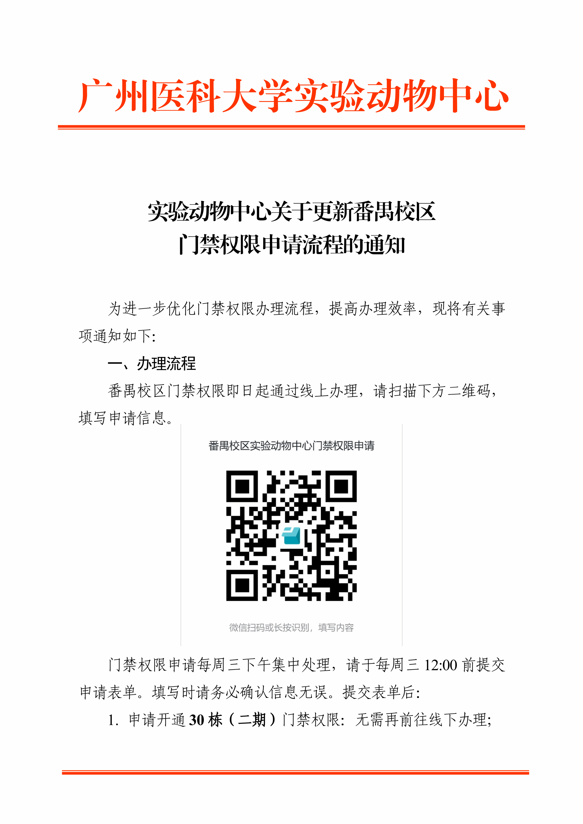 实验动物中心关于更新番禺校区门禁权限申请流程的通知