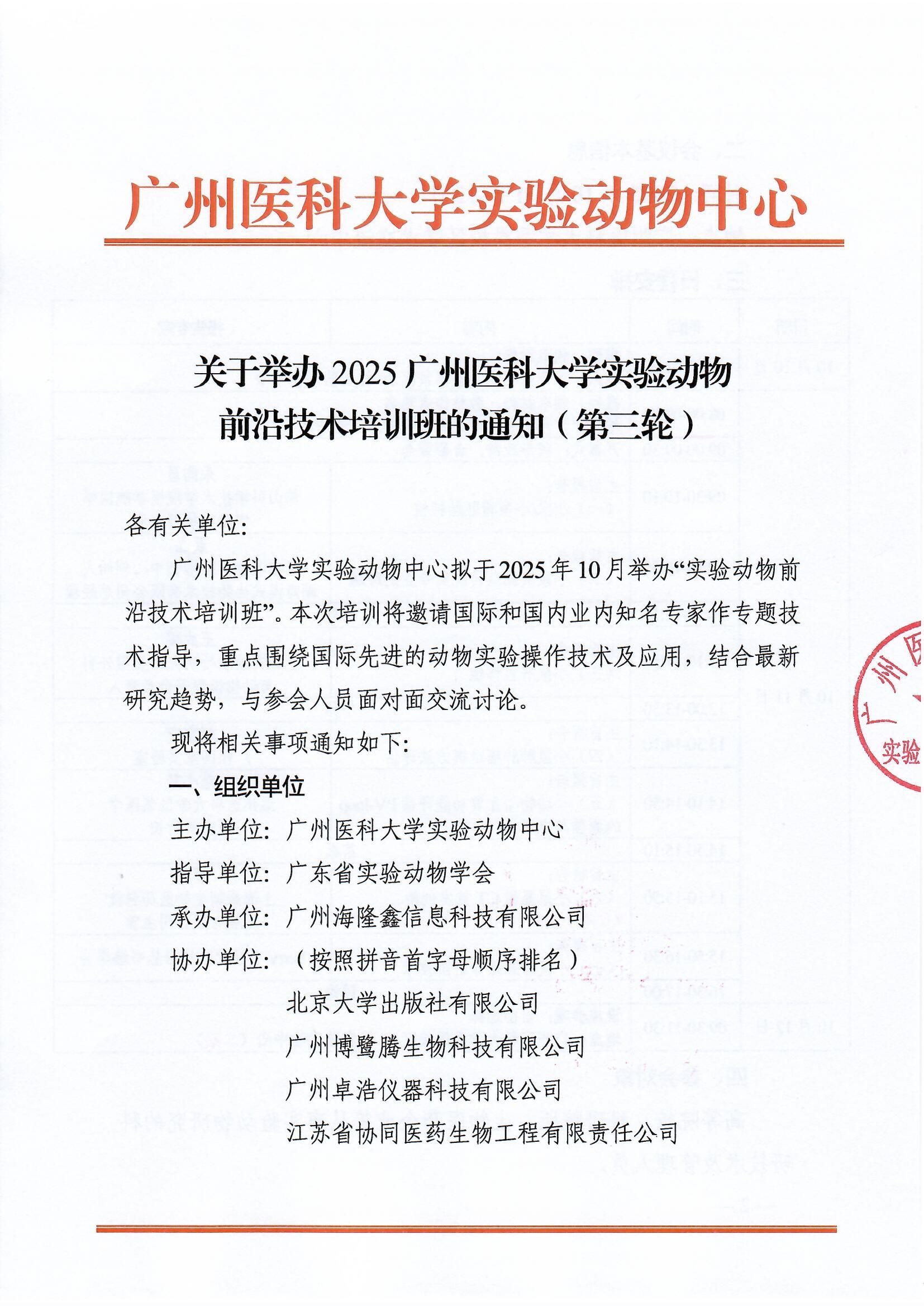 关于举办2025广州医科大学实验动物前沿技术培训班的通知(第三轮)